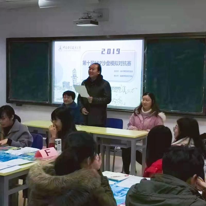 11月25日晚,学院在文添楼203开展了对报名参赛队伍的赛前培训,邀请了具有丰富经验的张慧德副教授为参赛选手作《ERP仿真实验案例》专题讲座,通过沙盘模拟教具和会计信息化软件的应用进行ERP仿真实验的模拟情景,参与制造型企业的6年经营推演,采用筹资策略、投资策略,在动态的企业经营推演环境中,身临其境地感受“三流合一”(物流、资金流、信息流的协同)和“业财融合”,深入其境的进行企业运营、参与决策,进行会计核算、财务管理及会计信息分析。