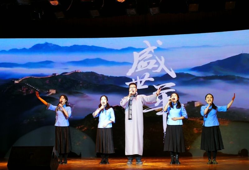 晚会分为三个主题:新思想、新中国、新时代。各院都贡献了精彩纷呈的表演节目。英国365官网学硕研究生章哲、李俊琳、杨柳燕、李艳菲、周颖五位同学带来了歌曲朗诵节目《少年中国》,立志成为奋发图强、自强不息的中国少年。(文/图 国菲菲)