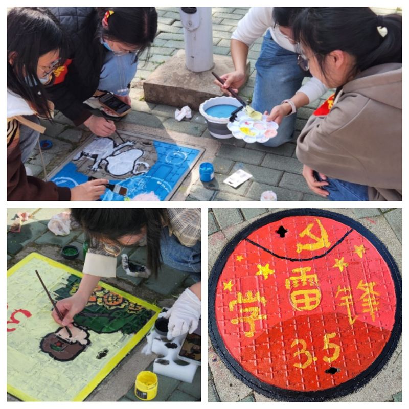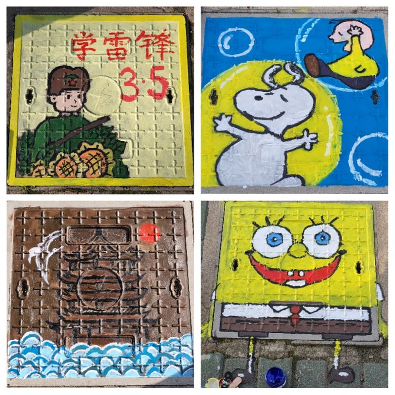 本次井盖彩绘围绕着“学习雷锋”、“武汉风貌”、“青春风采”等主体开展,在活动当中,志愿者们顶着太阳,用画笔在井盖上一笔一笔地展现自己的创意。经过一次次的涂刷,让平平无奇的井盖变得色彩斑斓、妙趣横生。