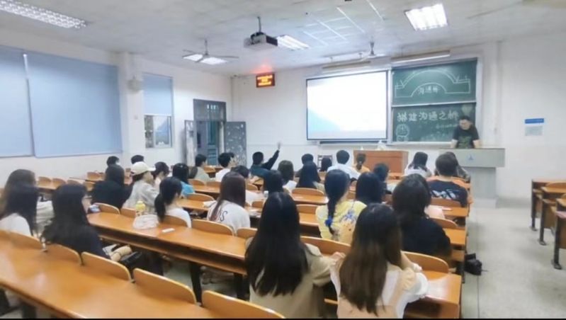 随后,主持人结合非语言沟通活动中遇到的信息传递问题,向同学们介绍了影响沟通的因素,包括态度、环境、遇到假设等。接着从交流表达者与交流接收者两个角度,引导同学们学习达成有效沟通的相关知识技巧,让大家在班会中获得了实际的沟通经验与技能提升。