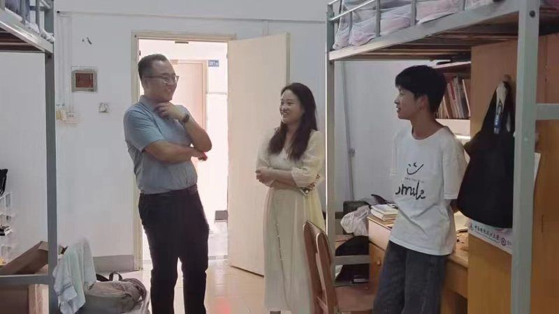 在宿舍走访慰问的过程中,三位领导、老师和同学们进行了深入细致的交谈,胡书记首先对各位同学进行了亲切问候,并询问大家宿舍安置情况,随后嘱咐各位同学在新环境下,要与宿舍同学相互帮助、团结友爱。同时,胡书记强调大家遇到问题要及时与辅导员、学院沟通,学院一定会及时帮助大家。赵老师在与学生交谈过程中强调,大学是一个人锻炼自我,快速成长的黄金阶段,鼓励同学们要充分利用大学的各种资源和平台,抓住机会来全面提升个人的综合素质。黎老师十分关注同学们对南湖校区的适应情况,她鼓励同学们要尽快适应新环境,坚定信心,踏实学习,开拓视野,在南湖校区开启璀璨的新篇章。