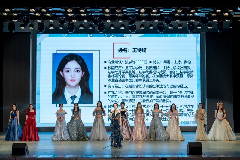 乐曲妙音流转,灯光如梦似幻,裙摆婀娜多姿,十二位倩影闪耀登场,掀开“我型我秀”的序幕。选手们身着华服,面露微笑,充满自信与优雅之姿,精彩绝伦的走秀引来观众们热烈的掌声与欢呼。随着最后一个鼓点的下落,选手们纷纷述说自己的比赛宣言,为本篇章画下完美的句点。