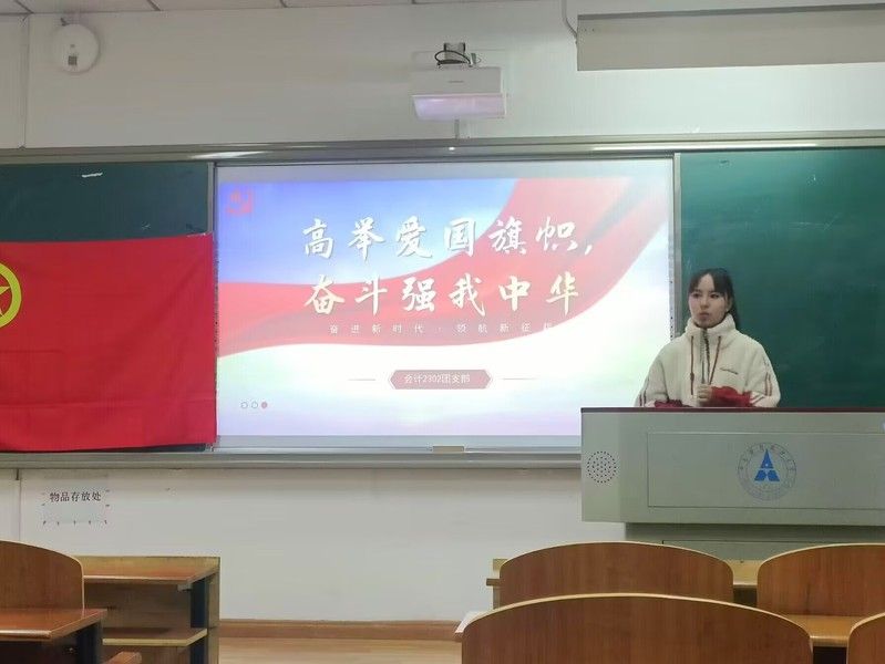 新闻网讯(学生通讯员 杨依霖 林家珍 摄影 杨依霖)为弘扬爱国主义精神,激励青年团员踔厉奋发跟党走,11月14日晚,首会计2302班团支部于文润楼202教室举行“高举爱国旗帜,奋斗强我中华”主题团日活动。本次活动由团支书张诗宇主持。