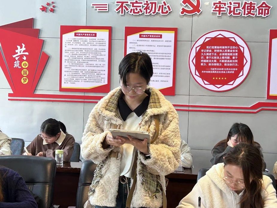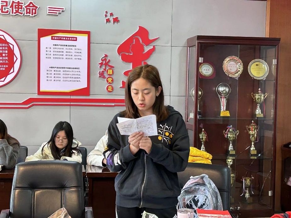 滕阅同志带领大家深入学习了《2024年政府工作报告》,她通过阅读总结,认为政府工作报告是国家智囊团给参加“2024”这场考试中给所有人划的重点,里面有哪些行业、哪些地区、哪些人群会得到政策扶持,对于我们经管法融通的211双一流大学中的会计学专业,哪些赛道是“柳暗花明又一村”,哪些赛道是“一夫当关,万夫莫开”等疑问具有一定指导意义。”