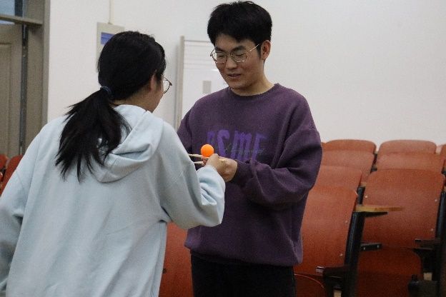 “孵化还是腐化”乒乓球接力游戏中,同学们学习了心理韧性的定义与运行过程。小组成员们不断磨合、相互鼓励,在乒乓球一次次掉落又拾起的过程中,锻炼了大家的耐心与恒心,这也正是我们想向大家传达的:生活中总是会遇到大大小小的挫折与困难,而我们需要在一次次跌倒后站起,直至顽强战胜它们。