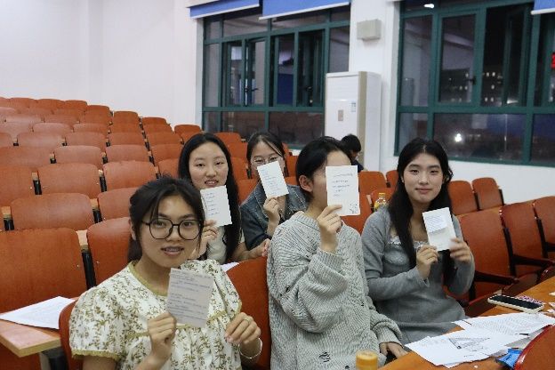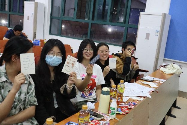 在心理学家们的共同努力下船身得以安全穿过风浪,这时,警报声再次响起,紧急播报轮船上的一件无价之宝于半小时前被窃取。各位心理学家们需要证明自己的清白以及帮助我们找到真正作案者。在“嫌疑人X的献身”拼贴诗游戏中,同学们学习了心理韧性的培养方式与途径。在面对困难与挫折时,我们首先要让自己静下心来,对事件进行客观、正确的分析后再寻找最优解决方案。
