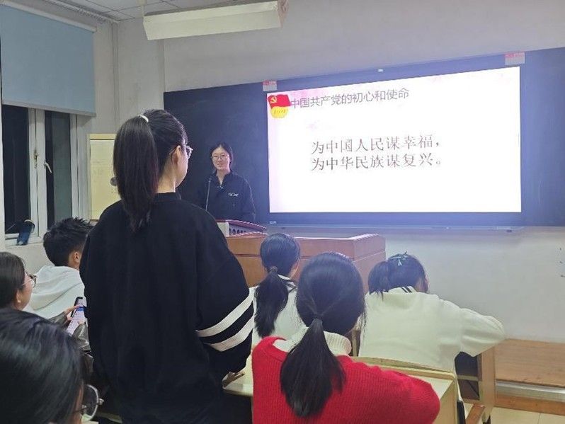团日活动以党史快问快答环节为开场,同学们踊跃作答,现场氛围热烈。在一问一答之中,中国共产党的性质、宗旨、行动指南、初心与使命被同学们铭记于心。接下来列举出的红船精神、井冈山精神、长征精神、延安精神让同学们更深刻地体会到了中国共产党之坚韧不拔、敢为人先的革命英雄主义与不怕困难的革命乐观精神。