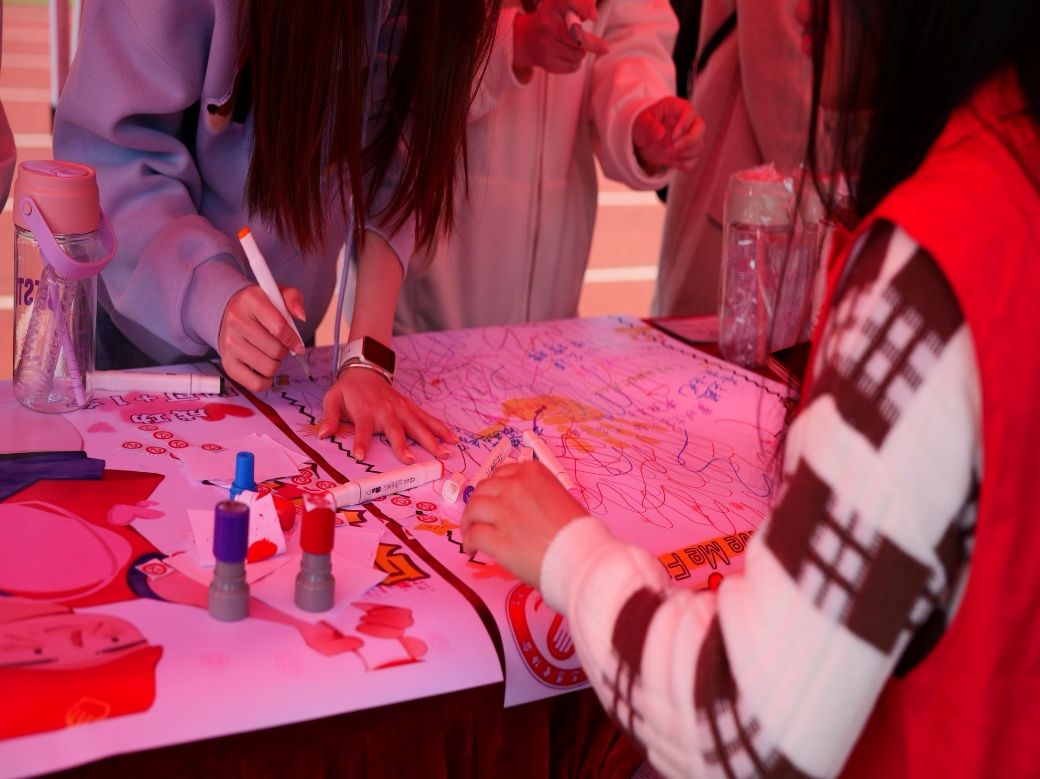 12月1日,嘉年华活动于上午九点开始,下午五点半结束。暖阳沐浴之下的环湖操场有着不同往日的热闹。各院摊位之中,会院志协摊位前学生们络绎不绝,传来阵阵欢笑。“贴爱心”和志愿活动记忆大考验是最能展现“志愿”主题的志协原创小游戏,也获得了同学们的青睐。当天活动的人流量更大,总结昨天工作经验、发挥志愿者的灵活应变能力,活动取得了良好的效果。小小的游戏,但拉近了学生们的距离,让他们体悟到志愿精神的魅力。